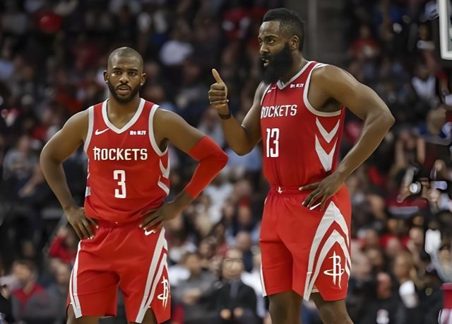 我们先把时间线退回火箭时期,第一年两人把火箭推到了巅峰,65胜17负的队史最佳战绩,只差一步就能够迈过勇士进军总决赛。彼时的哈登还是得分王,是MVP。在大多数球迷口中,他们是唯一能够干翻巅峰勇士的球队。